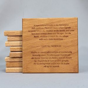 9x9 cm glassbrikke i bøk. Oljet med godkjent olje.