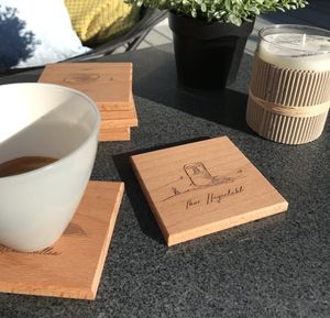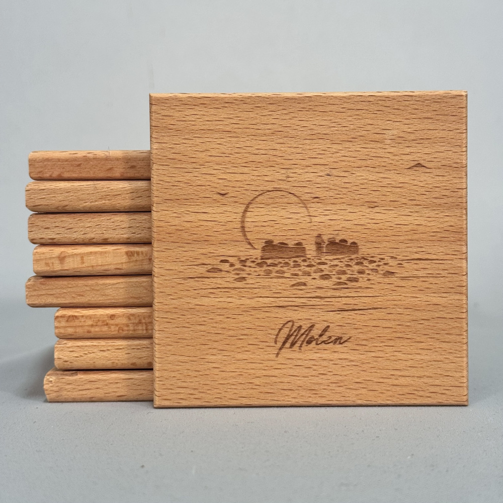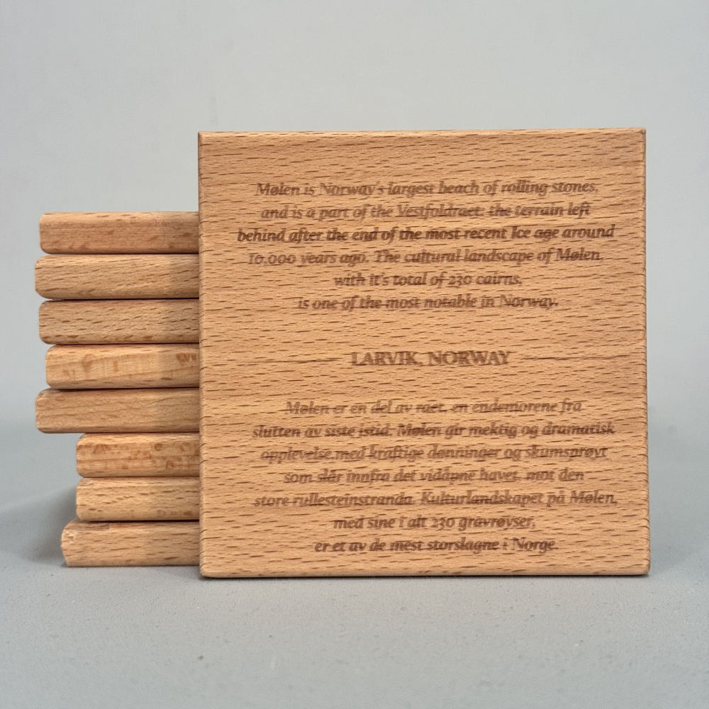 9x9 cm glassbrikke i bøk. Oljet med godkjent olje.