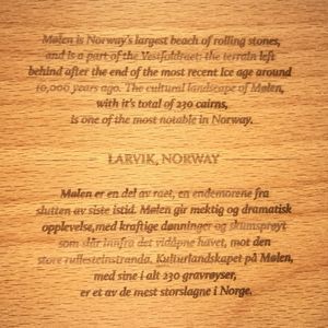 Tekst på baksiden på norsk og engelsk om motivet.