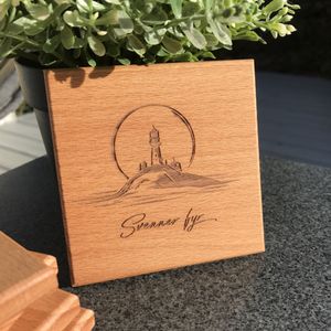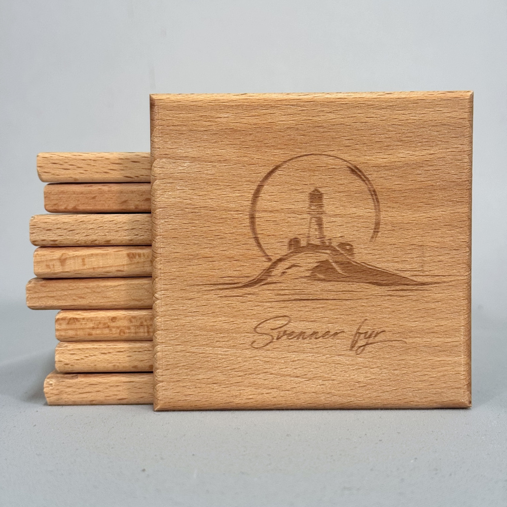 9x9 cm glassbrikke i bøk. Oljet med godkjent olje.