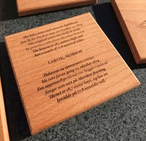 Tekst på baksiden på norsk og engelsk om motivet.
