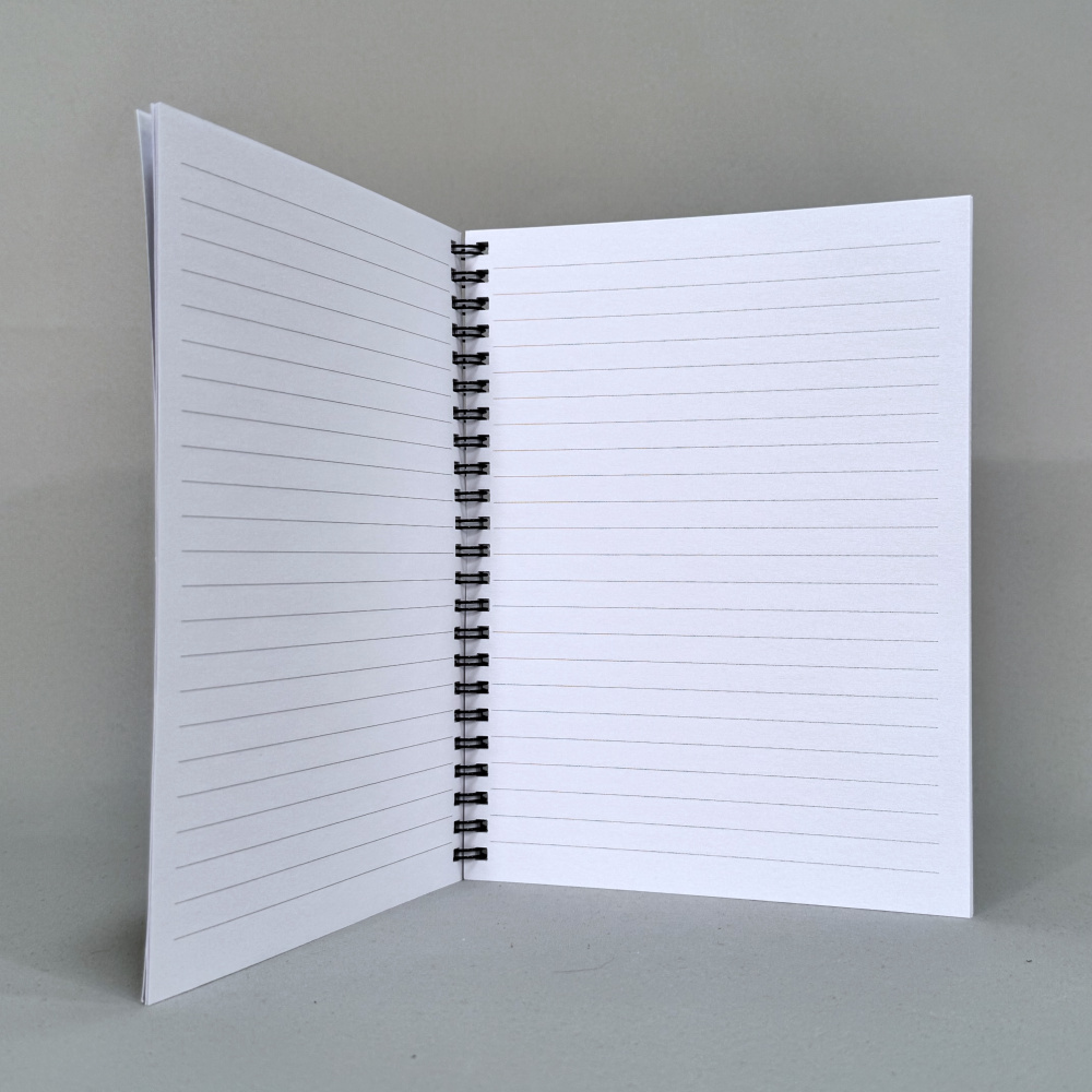 Produsert ved AoK sitt eget trykkeri, og montert for hånd med hulling og spiralisering.