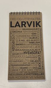 Omslaget er preget med ord og uttrykk fra Larviksdialekta. Notatbok med linjerte sider. Mål 10 x 20 cm