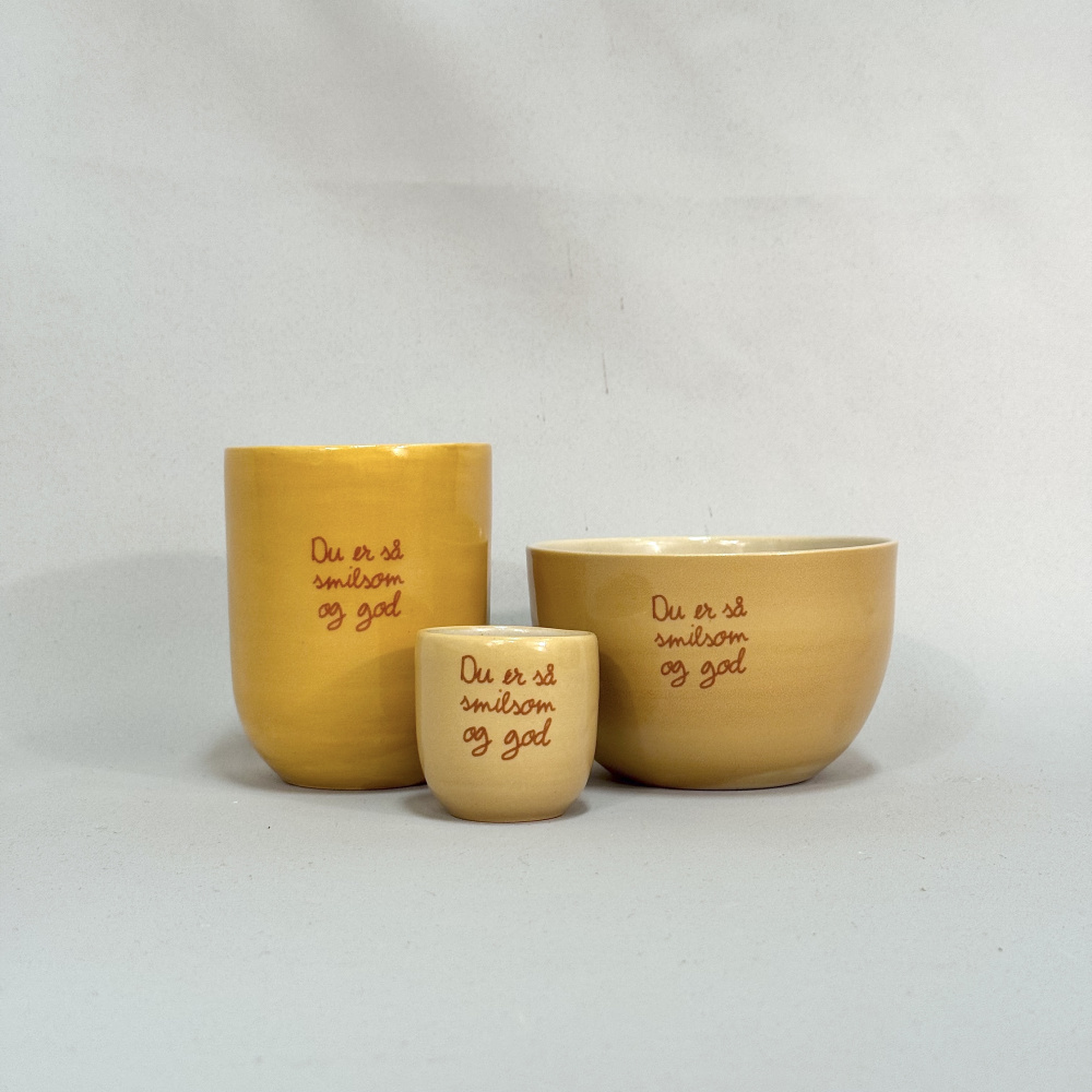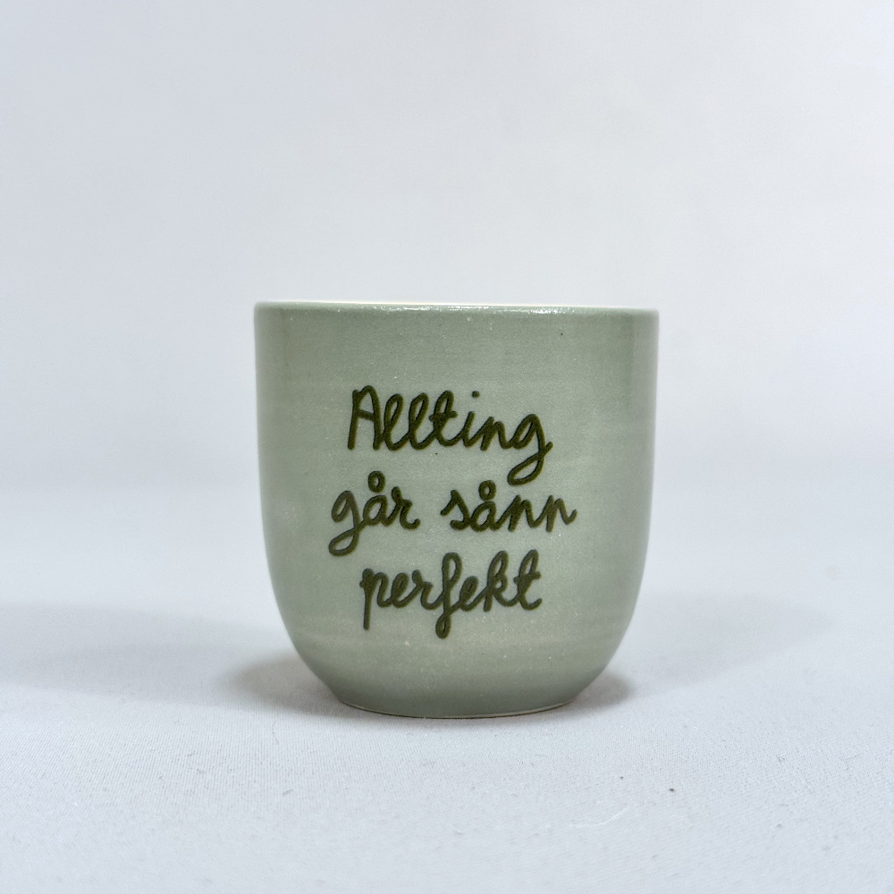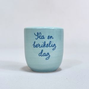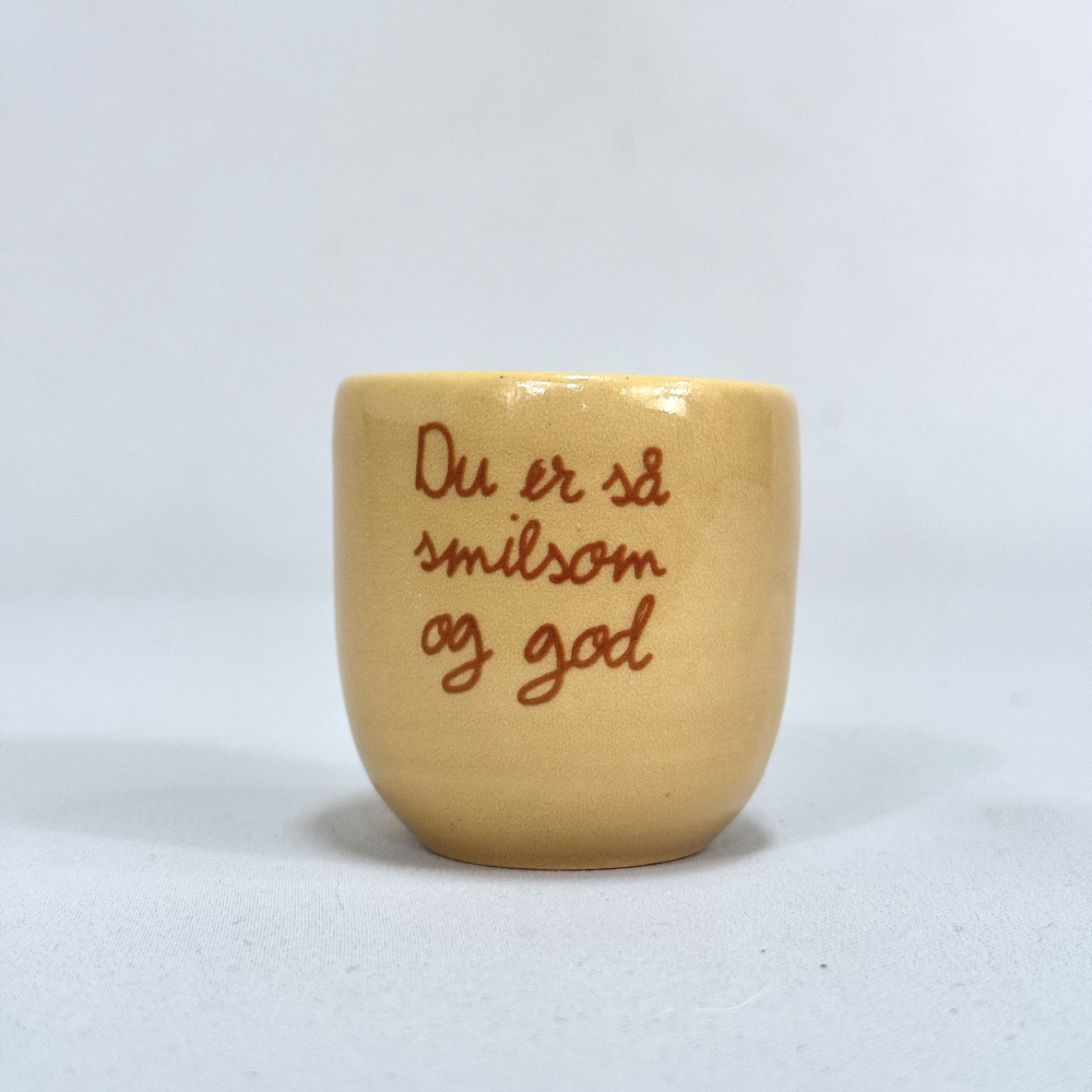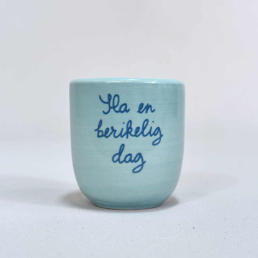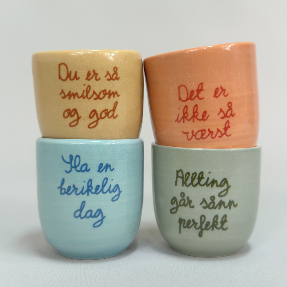 Rette eggeglass i steingodt med morsomme sitater fra arbeidstakere