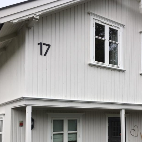 Høye tall og bokstaver produsert i 12mm Tricoya med 50 års råtegaranti. De kan males med vanlig husmaling.