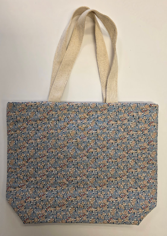 Flott veske med solid hanke i jutebånd. Vesken er foret og har en lomme.